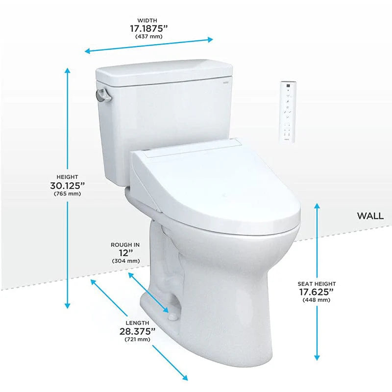 TOTO MW7763084CEFG#01 Drake Washlet+ Two-Piece 1.28 GPF Universal Height Toilet with C5 Bidet Seat