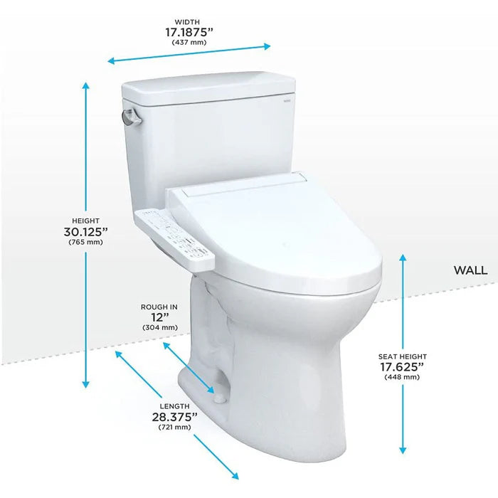 TOTO MW7763074CEFG#01 Drake Two-Piece 1.28 GPF Washlet+ Toilet with C2 Bidet Seat, Cotton White