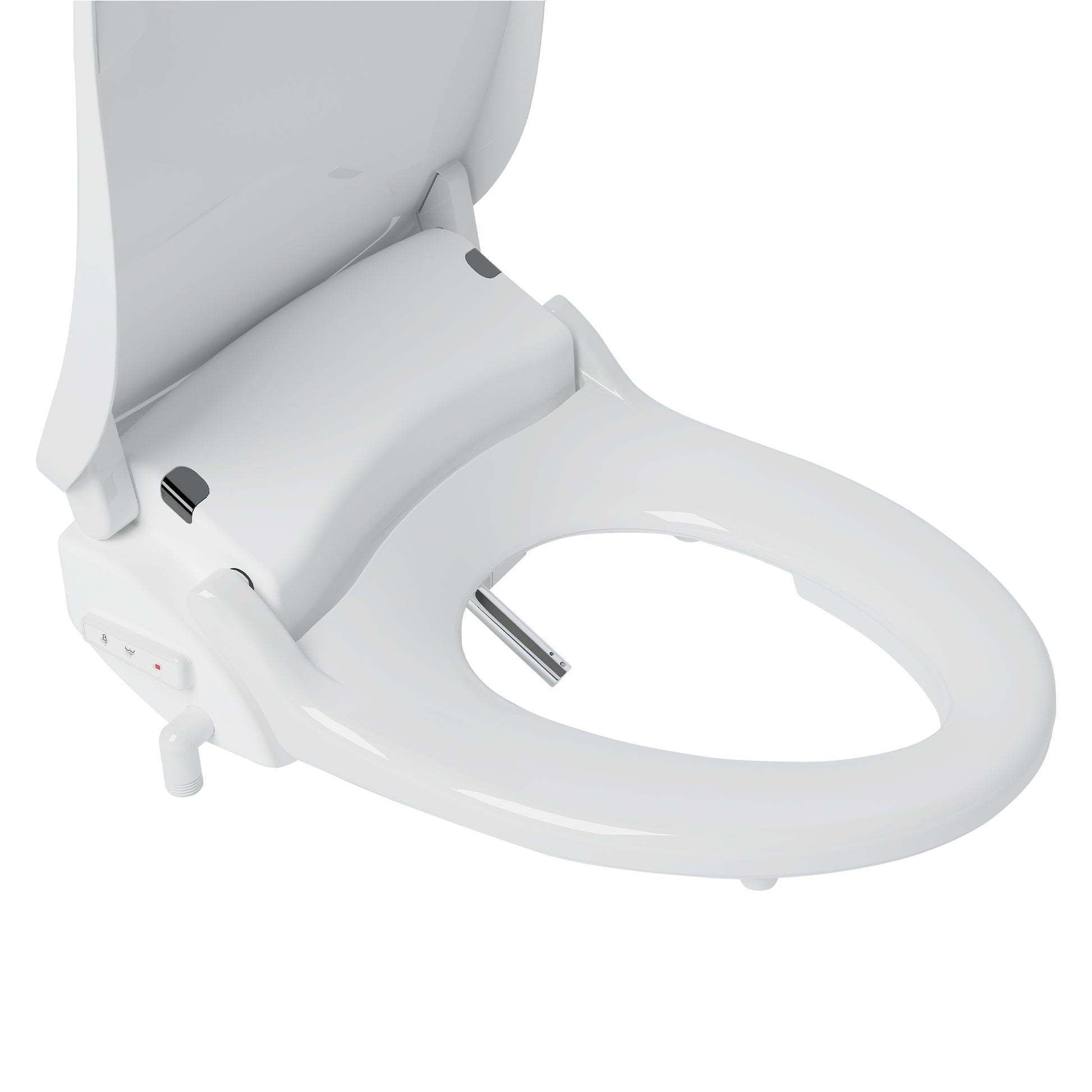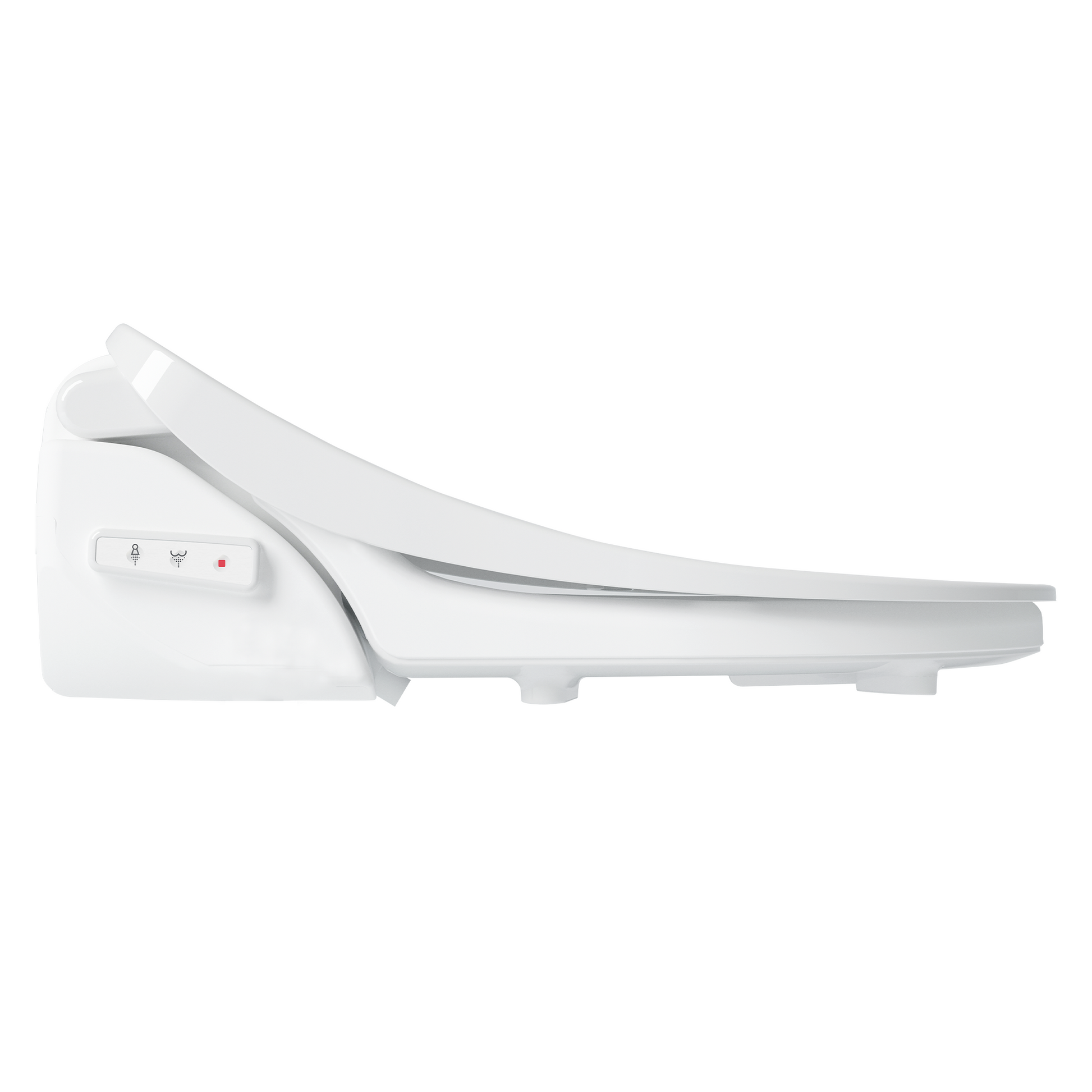 Representing the top of the Bio Bidet Slim Series, the Slim Three takes all features of the Slim Two and adds a warm air dryer. This remote controlled luxury bidet experience provides all comforts you need while keeping the price tag below $400. The low-maintenance self-cleaning nozzle is make of durable stainless steel. The seat is easy to install and plugs into the wall via a four foot cord. Most of the features are controlled by a wireless remote, with water and seat temperature controlled by buttons on the side of the seat. There is an illuminated bowl for night use, and a fusion heating system that utilizes a coil and tank system for continuous warm water to your behind. If there are children in the house, there is a button that lowers the water pressure for kids to use.