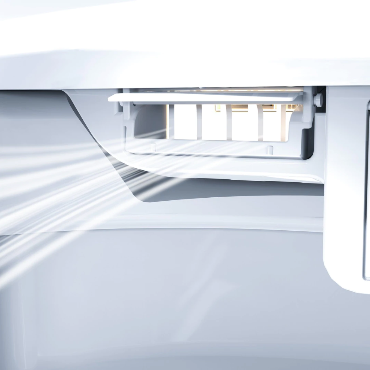 This unit cleans you via a single stainless steel nozzle system with three spray ports. Inside the nozzle housing is a UV light that automatically sterilizes the nozzle. Additional lighting includes the in bowl night light that allows for use without aid from bathroom lights in the dark.