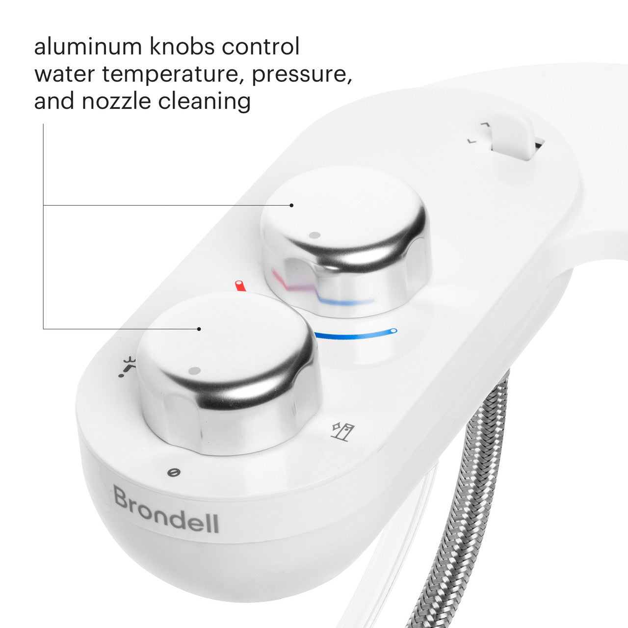 Take your personal hygiene to new heights. Brondell's SimpleSpa Eco Advanced Bidet Attachment delivers a front and rear wash, with adjustable water pressure and temperature. Control your wash using the convenient side-arm panel with attractive aluminum knobs and easy nozzle adjuster.