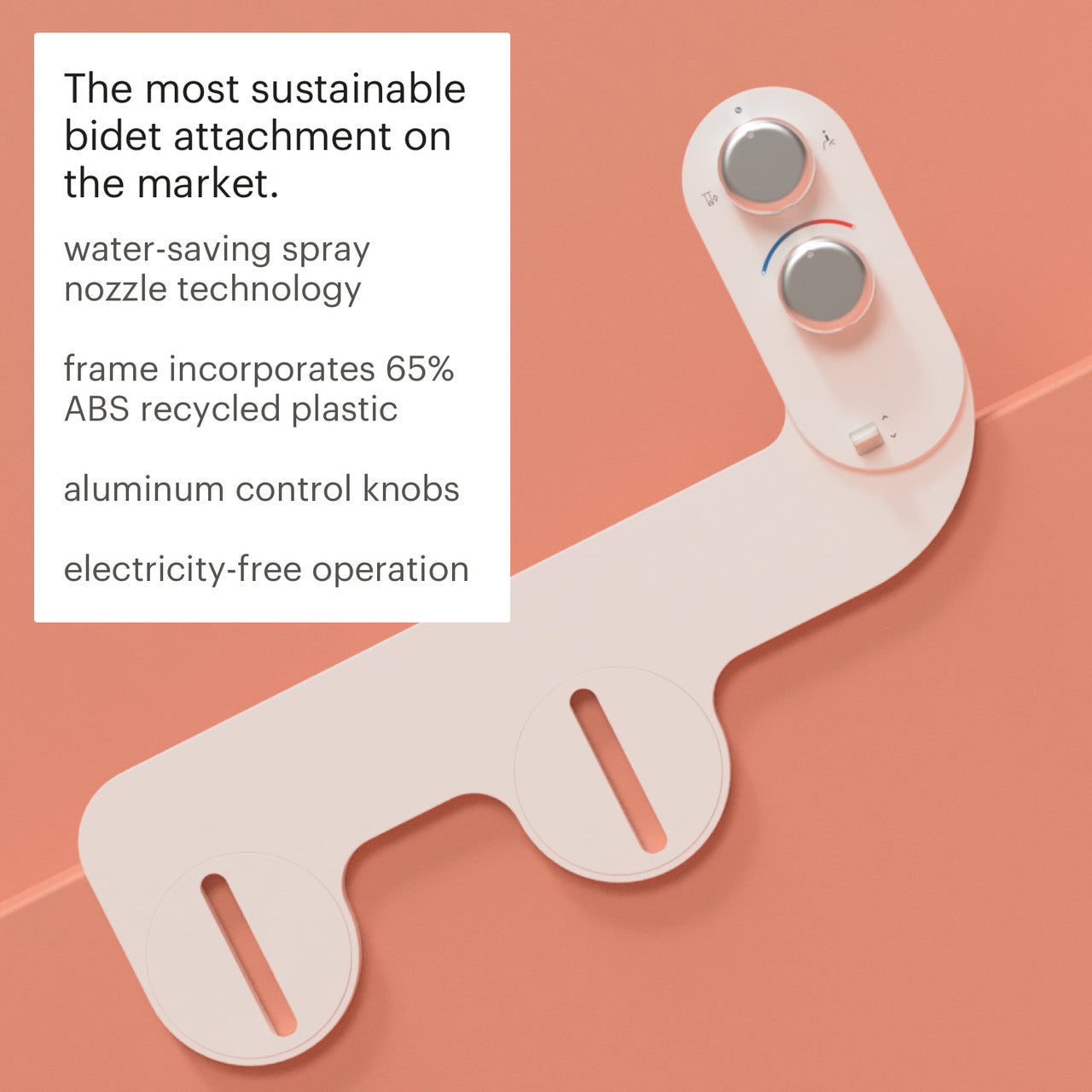 Brondell integrated 65% recycled ABS plastic into the durable bidet frame, and added water-saving Nebia spray technology into the retractable nozzle. SimpleSpa Eco is engineered to reduce water usage without sacrificing pressure or cleansing power. It’s an attachment that installs easily beneath your existing toilet seat—and raises the bar on sustainability in the bathroom.