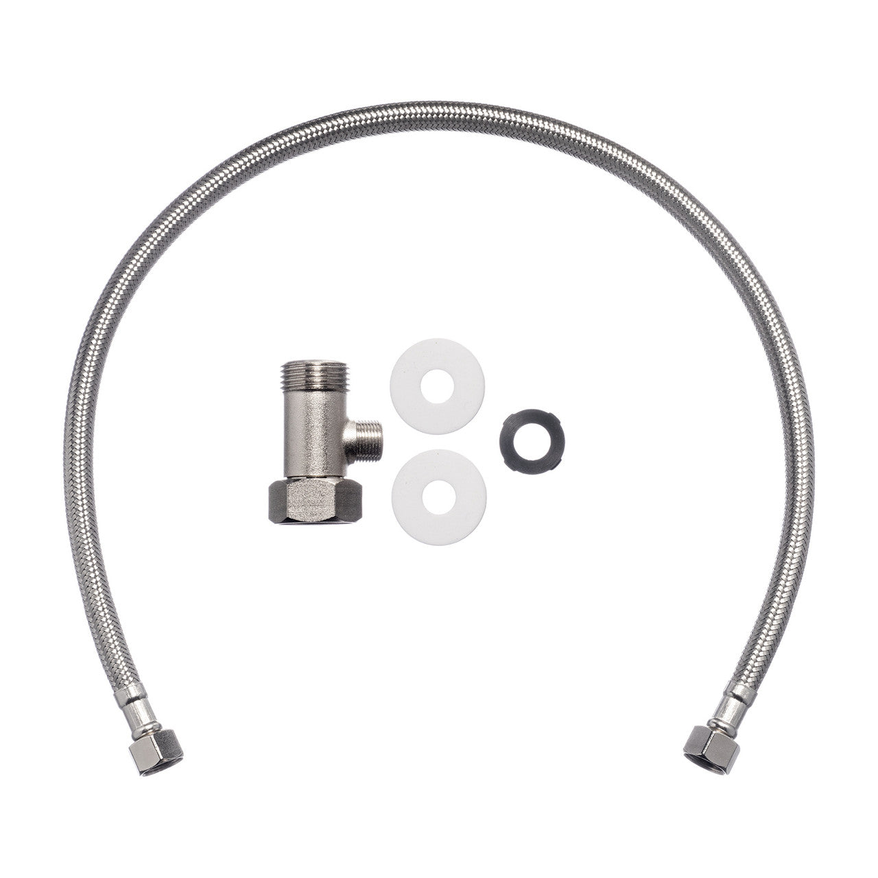 - Braided-metal cold water hose and all-metal T-Valve