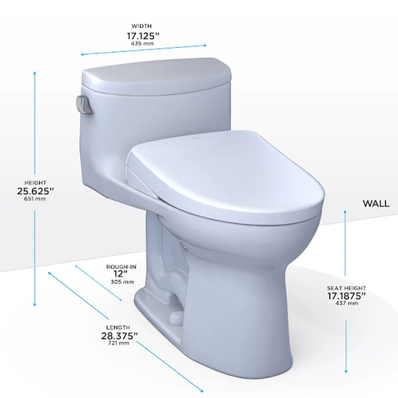 TOTO WASHLET+ Supreme II One-Piece Elongated 1.28 GPF Toilet and WASHLET+ S7 Contemporary Bidet Seat, Cotton White - MW6344726CEFG#01