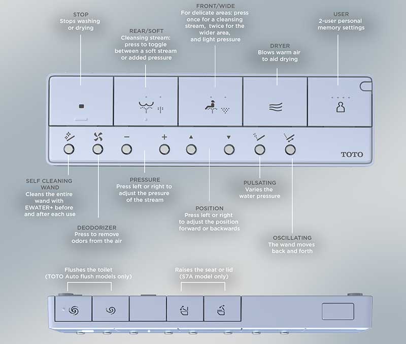 - Backlit Remote Control: Slim, ergonomic remote offers easy access to all cleansing and comfort settings.