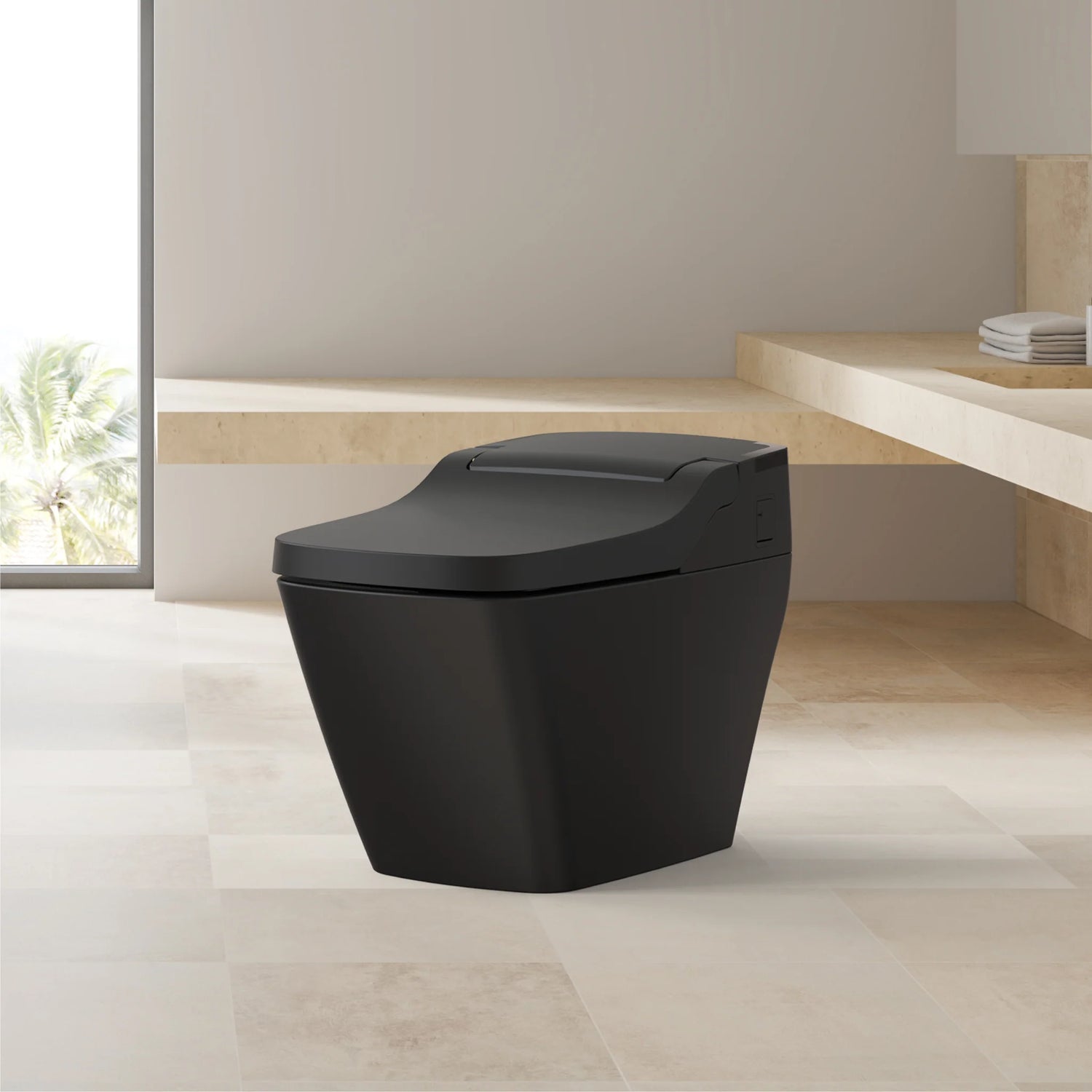 • Matte Black Finish: Stylish matte black coating covers the entire exterior of the toilet and remote for a bold, modern look.