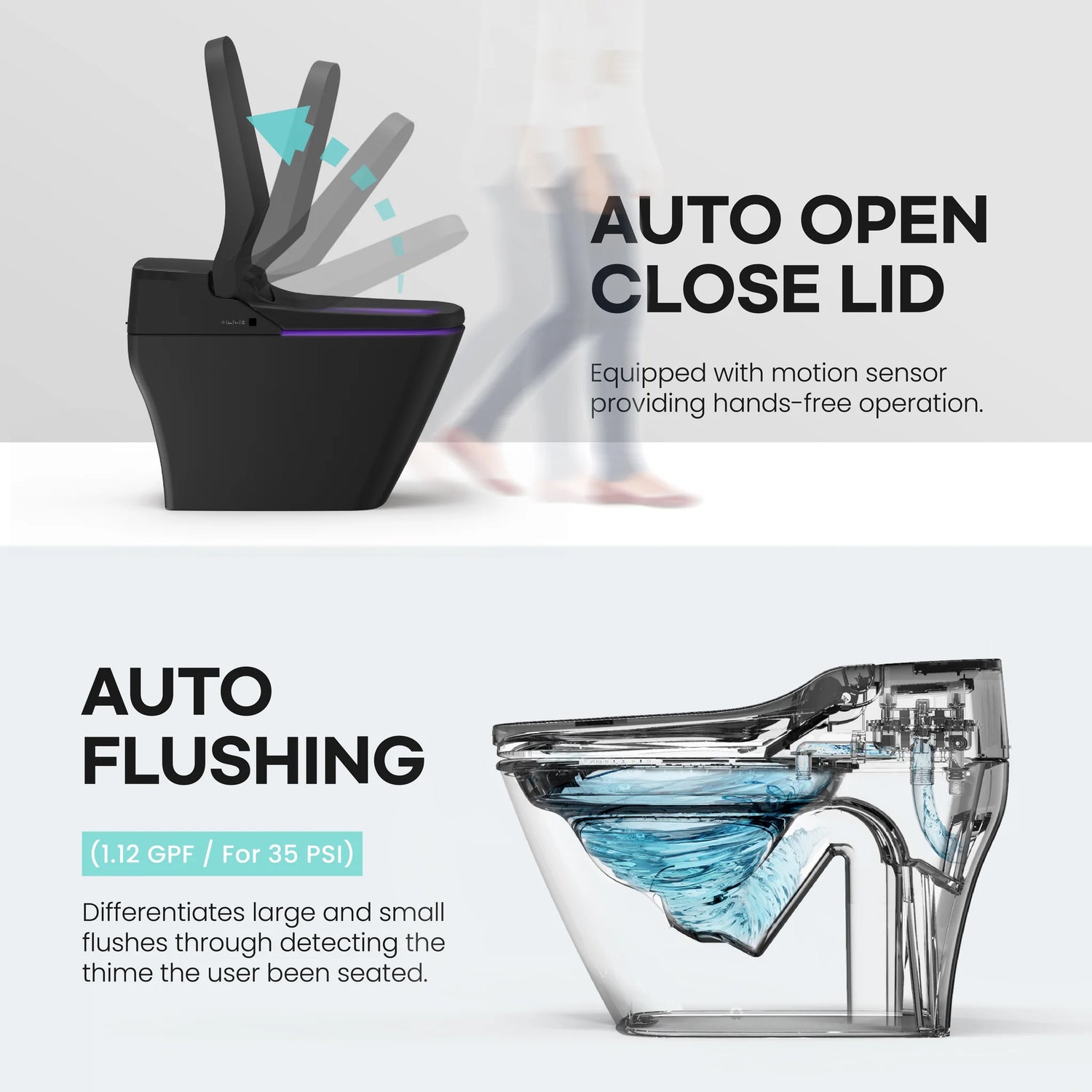 VOVO TCB-090SA Integrated Smart Bidet Toilet with Auto Open & Close Lid - Matte Black